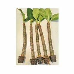 Native to Central America and the Caribbean, Frangipani are glorious exotic plants which are ideal for you to enjoy on your summer patio. Succulent, lush plants house clusters of colourful perfumed flowers with a fragrance so good you’ll wish you could bottle it! Get the holiday look – and fragrance – in your very own garden! Plumeria ‘Yellow’ has waxy, yellow centred flowers with a white outer. Grow in containers and ideally keep over 10°C (50F). Height: 400cm (157″). Spread: 250cm (98″)..